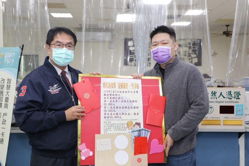 民政局長姜淋煌說明,台南市自今年1月1日起將產婦生產第1名及第2名新生兒之生育獎勵金自新臺幣1萬元及1萬2,000元再提高到2萬元,這是南市府繼108年提高產婦生產之第3名、第4名新生兒為3萬元,109年提高第5名以後每名新生兒為5萬元,及111年提高第1名新生兒為1萬元生育獎勵金之後,再度釋出之育兒福利政策。希望民眾能感受到南市府一份祝福的心意,還有社會對產婦及新生兒的恭喜及祝福。