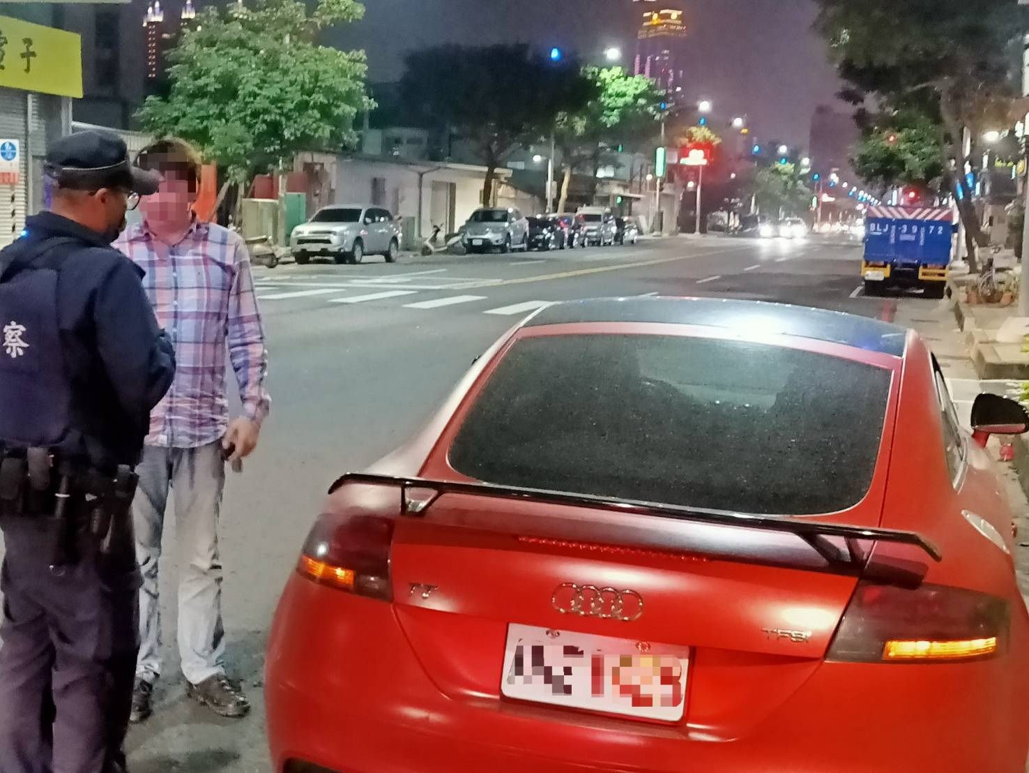警方表示,新的一年來臨,歡樂的氣氛充滿大街小巷,前鎮警持續堅守治安維護工作。前鎮警分局一心路派出所巡邏警組於日前巡邏經過一心路段時,發現林姓男子駕駛紅色奧迪跑車停於路中央,員警惟恐夜間視線不良,可能衍生交通事故,即刻以巡邏車停放故障車後方,以提醒用路人道路上有拋錨車輛,另迅速協助將該車輛推至路邊安全地點。