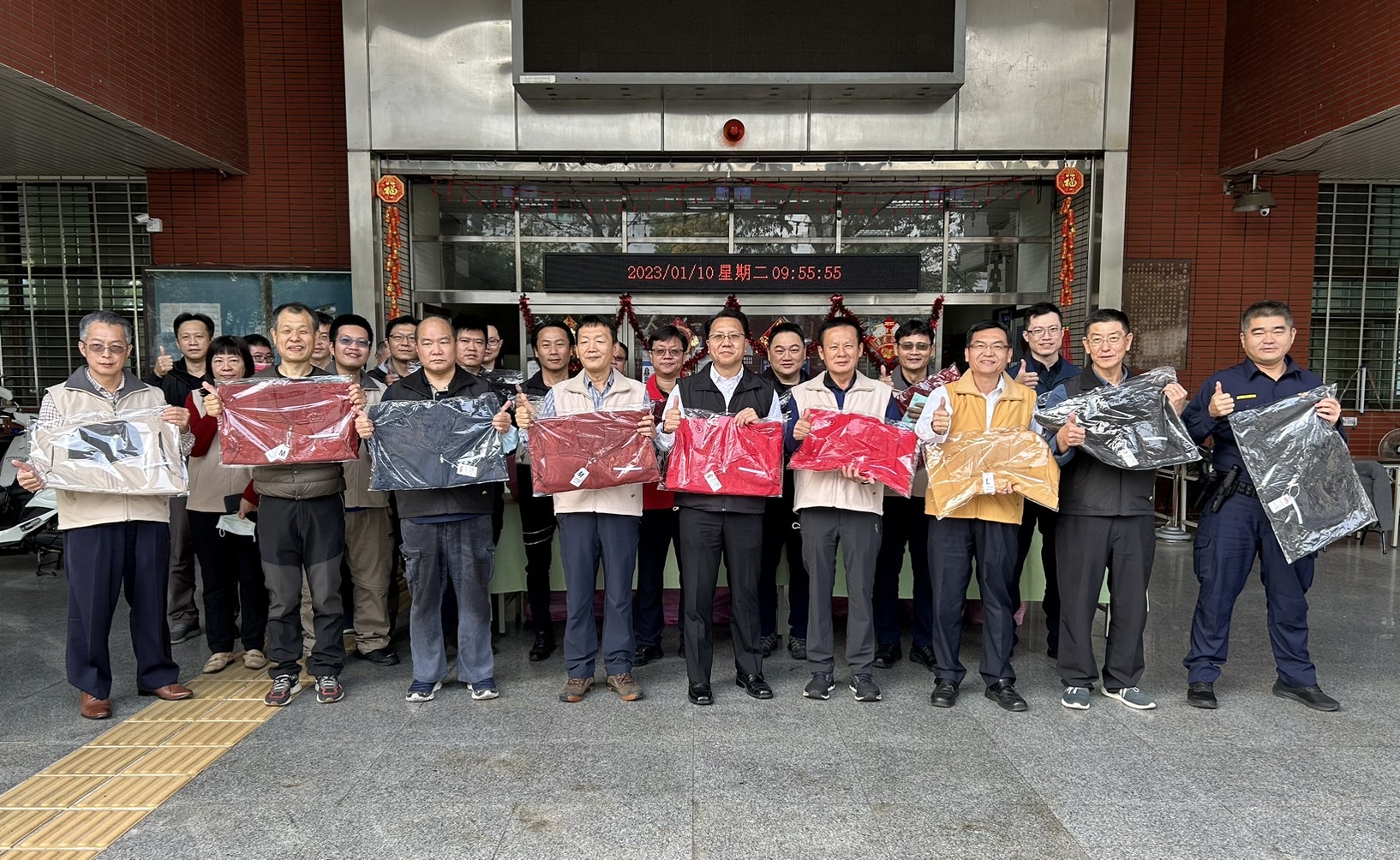 贈送儀式於今(10)在分局1樓大門由分局長尤啓南代表同仁接受,並表示主任王木體貼員警的心意,感謝對於員警的關心與相挺,不僅讓同仁備感窩心,也鼓舞員警士氣,未來也將持續全力做好治安、交通及為民服務工作,用心提供轄區居民安心的生活環境,也希望民眾對於警方的努力繼續給予支持及肯定。