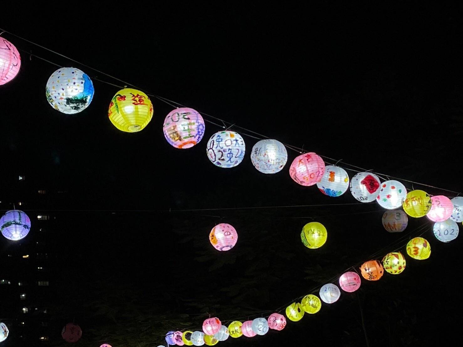 「燈籠上有著各種可愛的兔子,還有彩虹,入夜後顯得繽紛美麗。」農曆新年接近,河堤國小與河堤商圈發展協會合作彩繪燈籠,讓學生畫上新年新希望,還有今年最夯的兔子等可愛吉祥物,高掛在學校通學步道上,一排排色彩繽紛的燈籠照亮通學步道,令親師生也驚豔。
