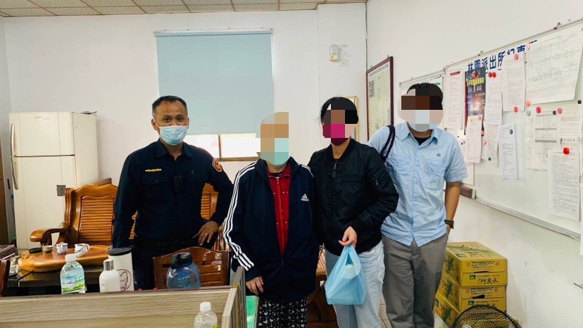 林園派出所員警何國光1月8日接獲民眾報案,在林園區工業二路上有迷途老人,員警立即到場了解,70歲的呂黃姓老婦人因身體狀況不佳,被女兒帶至林園區中芸的身邊照顧休養,半夜因年節將近思念丈夫,於是趁著女兒及女婿不注意,偷偷外出想要回家探視。