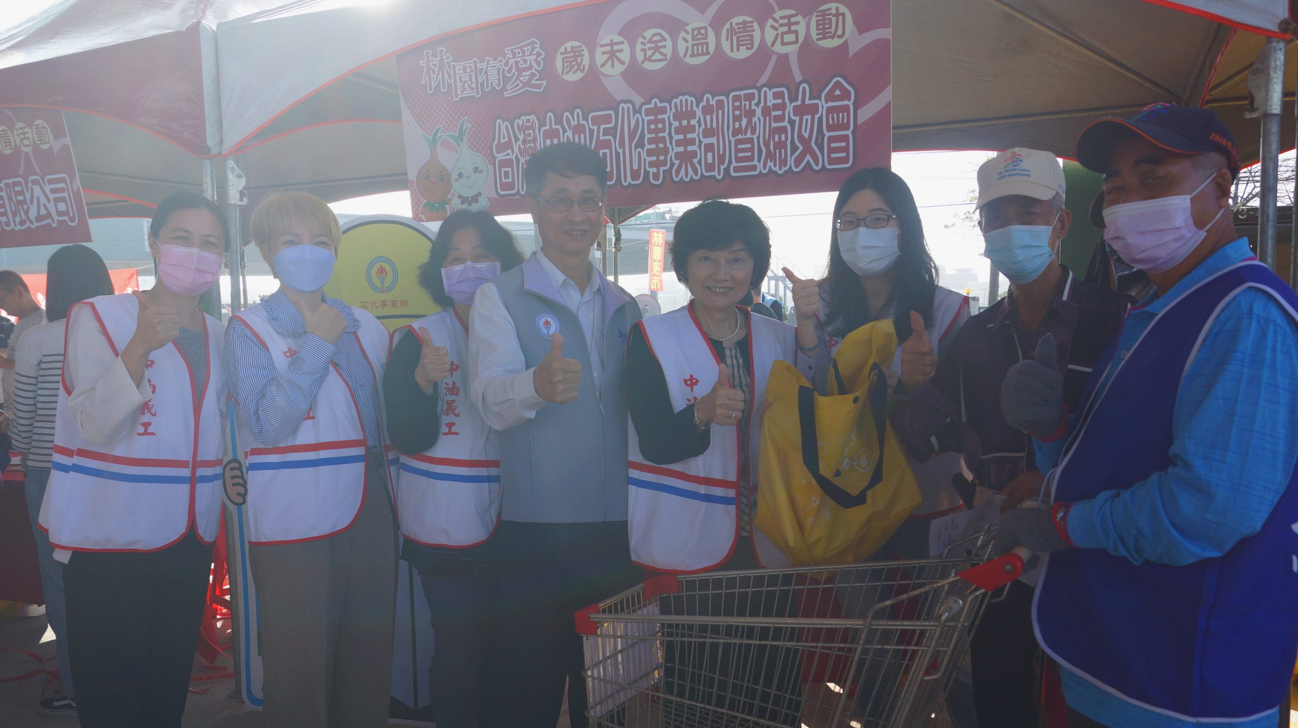 台灣中油公司石化事業部今(13)日攜手高雄市林園區公所舉辦「林園有愛~歲末送溫情」活動,地點選在遷址後的林園夜市廣場(溪州二路)辦理,石化事業部更主動義捐中油生技產品-洗可麗環保洗衣精予林園區的弱勢族群,分享油人愛心。