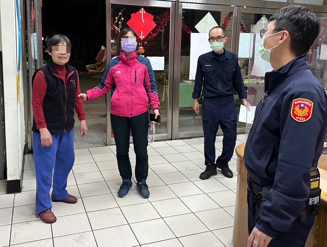 由於天氣寒冷、時值接近春節應是闔家團圓的日子,警方獲報後不敢大意,比照重大刑案列管緊急協尋案件,馬上調閱監視器並發動警網於轄內穿梭尋找,但隨著天色越來越暗,遲遲未歸的母親讓家屬更為擔心,幸好於18時許有熱心民眾向警方提供線索,稱海專路上某科大停車場附近有一名牽著腳踏車的婦人,警方連忙到場確認是李婦無誤,樂天的李婦一直向員警道謝,隨後由員警護送回家,也終於讓家屬放下心中大石頭,這下可以好好準備過個好年了。