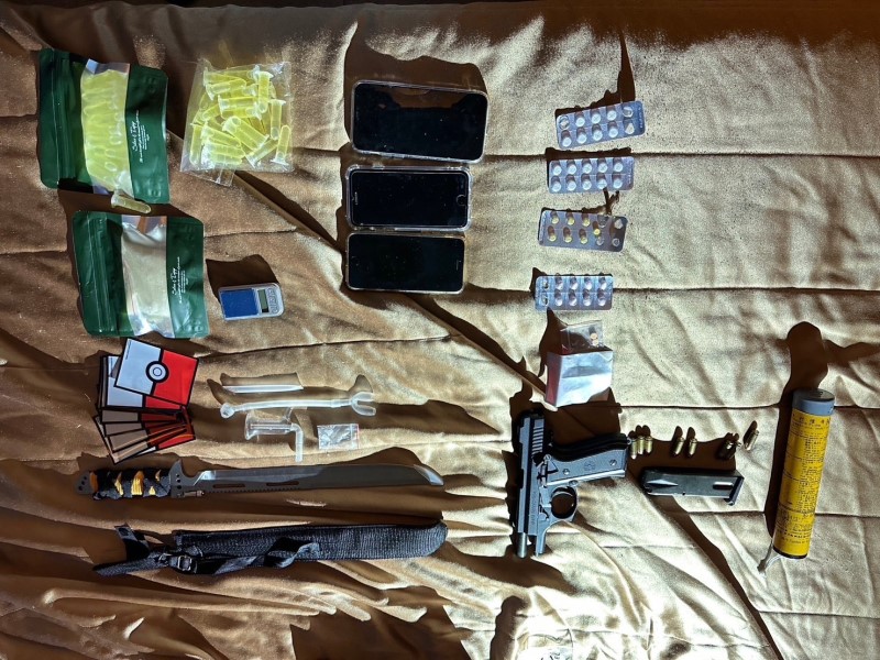 林園分局立即組成專案小組展開查緝,這名通緝犯生性狡猾多疑,為了躲避司法追訴選擇逃逸,身邊隨時攜帶危險性武器,讓員警不敢大意,從這名通緝犯的生活習性著手,發現犯嫌通緝後居無定所,以車為家,開著車子在高雄台南嘉義四處竄逃,員警一日奔波400多公里,終於在1月14日等到犯嫌至汽車旅館休息之際,展開攻堅緝捕,順利將其繩之依法,現場查獲改造槍械一把,以及大量毒品,警方訊後依槍砲彈藥刀械管制條例及毒品危害防制條例移送偵辦。