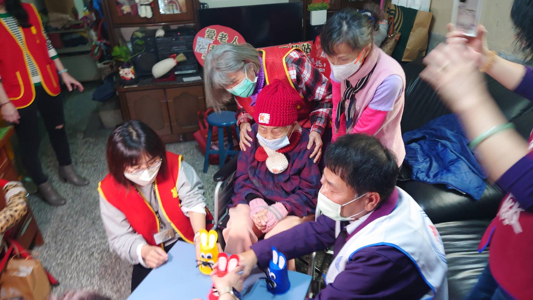 婦女會主委蔡秀美等婦女會姐妹,更於現場親自為劉阿嬤料理年菜,並與眾人服侍她進食。楊廠長、蔡主委、林主任等人更幫忙劉阿嬤,除舊布新張貼春聯。華山也安排延緩失智的「捉兔子」桌遊活動,帶阿嬤一起參與、紓壓心情。遊戲過程中,阿嬤笑容不止,現場歡笑聲不斷、氣氛熱鬧溫馨。