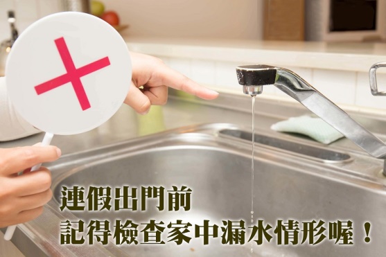 最後,近年國人利用過年期間安排多日外出旅遊的情形漸增,水利署特別呼籲民眾出門前透過檢查水龍頭是否關緊、馬桶是否漏水、水塔設備是否故障等簡單的小動作,減少發生漏水的可能風險,讓出門更安心,不僅節水,也是開春防漏財的重要小妙招喔。