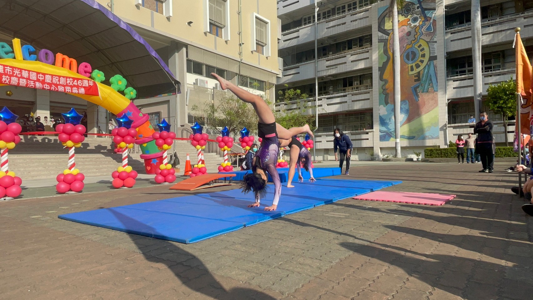(記者謝富益\高雄報導)高雄市立光華國中在今(18)日歡慶46週年校慶,舉辦了一系列精采絕倫的活動。運動會由校長郭虹珠主持,現場賓客盈門、人潮爆棚,校長向全場與會的來賓介紹光華學生傑出的表現與辦學績效。曾代表高雄市參加111年全中會競技體操比賽中,獲得3+1金的楊宜潔與葉宇臻同學,現場表演一段比賽時的光采英姿,拉開和平三樓活動中心剪綵序幕。