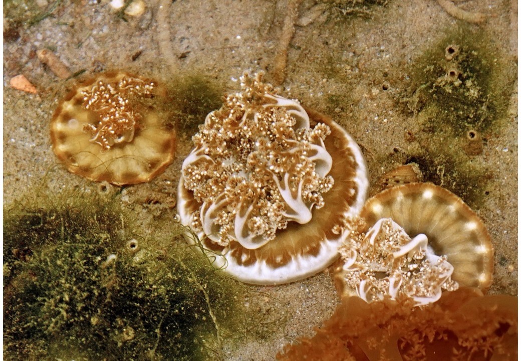 (記者李麗華\高雄報導)歲末年終,歡樂佳節的氣氛也漸濃,近來林園海洋濕地公園的明星物種—「倒立水母」已密集現身,看到這些猶如水晶花的水母大量出現,在水中搖曳生姿熱鬧非凡,是年節走春的首選。