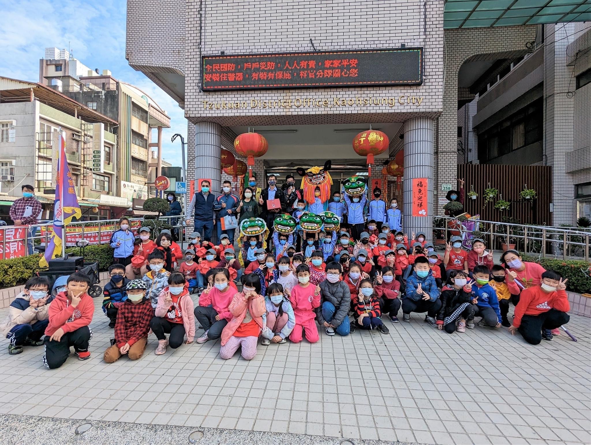 在校長林嘉文與家長會長楊坤能的帶領,梓官國小鼓武術獅隊今天(28日)上午敲鑼打鼓,並有202班與406班學童提彩球跟隨在後,學生們走進社區裡踩街,向社區中的長輩祝福新春吉祥,途經城隍廟、戶政事務所、區公所、郵局、農會等,沿途受到長輩的樂情款待與關懷,店家主動邀請舞獅進店祝福,沿路民眾爭相拍照,一路好不熱鬧。