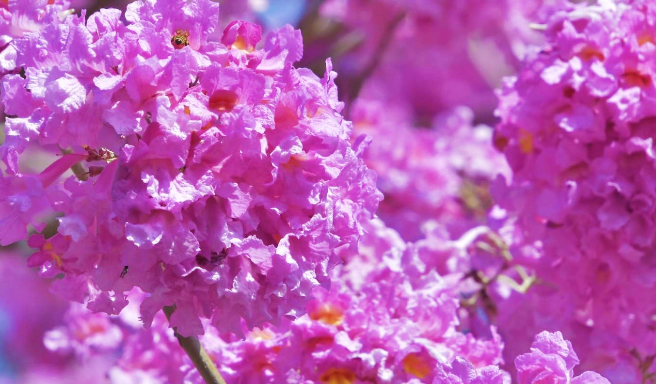 (記者李麗華\高雄報導)冬日的街頭籠罩在東北季風淒冷的氛圍,綠意盎然的植栽也耐不住寒氣而憔悴,然而喬木界紫葳科的顏值擔當—紅花風鈴木卻選在此時逆勢盛開,市民朋友若是路過中正路、和平路、高楠公路、水管路、翠亨南北路自行車道時,或是走在校園中、公園裡,都可能會與這位嬌豔的女神不期而遇。紅花風鈴木每值花期,總是綠葉盡落,以鋪天蓋地的態勢綻滿整樹桃色的鈴鐺花球,營造著夢幻又明媚的景致,在暮冬尾聲捎來春日將至的好消息。