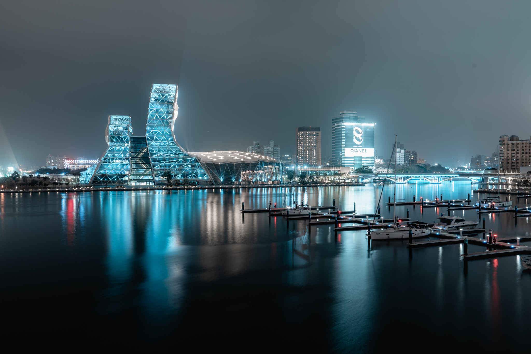 今夜,高雄透過愛河智慧控制燈光系統,在愛河沿岸及六座橋體,共同亮起象徵希望、能量的土耳其藍色,傳遞平安與希望,凝聚高雄人的信念。