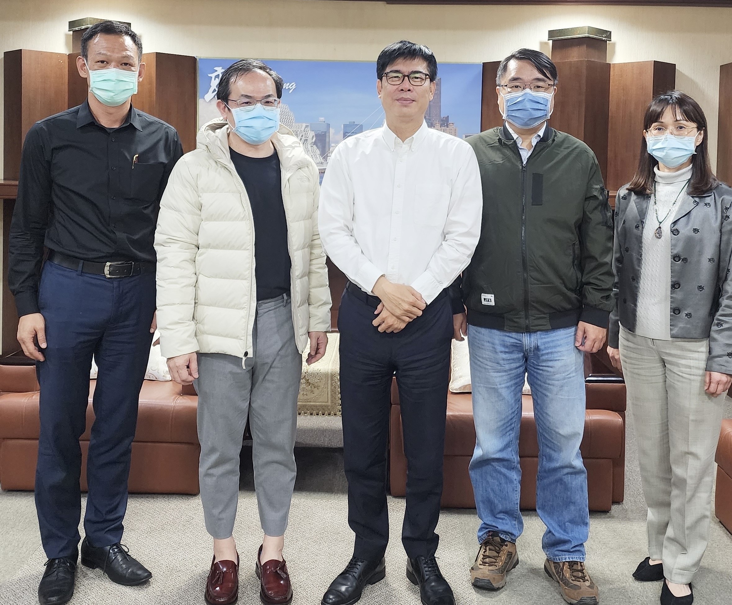 市長陳其邁今日與教師職業工會于居正理事長(左二)、教師產業工會李賢能理事長(右二)會談