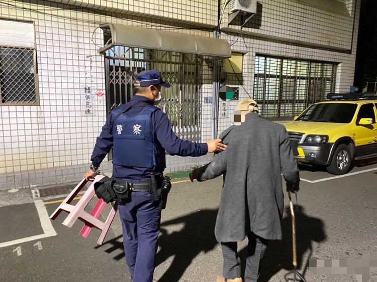 92歲陳姓老翁昨(20)日晚間10時許呆坐在街上且神情茫然,忘記自己該怎麼回家,且因體力不支索性坐在街上,正巧員警巡邏經過發現便上前關心老翁身體狀況。