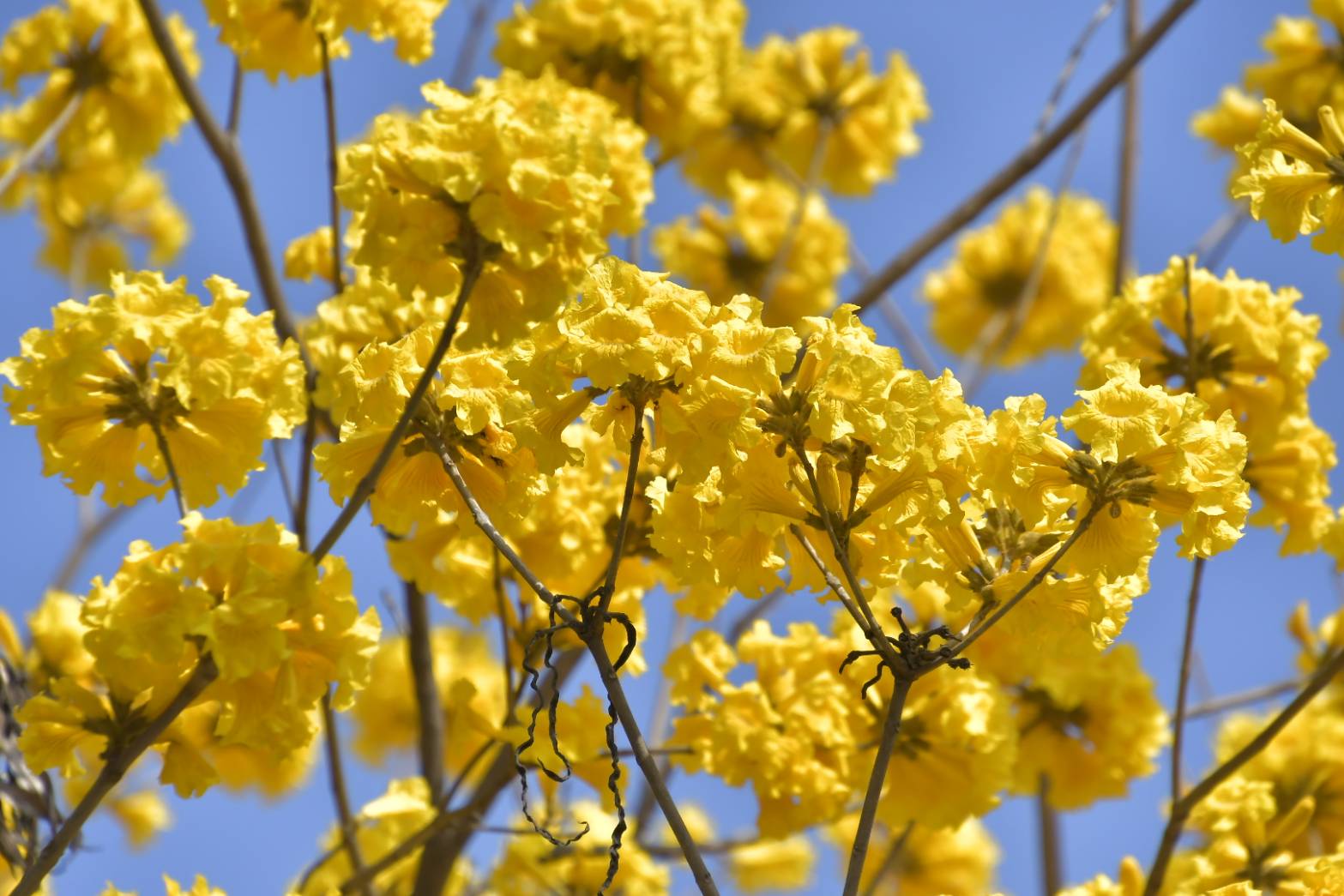 工務局表示,黃花風鈴木為紫葳科落葉喬木,又名黃金風鈴木、伊蓓樹,原產熱帶美洲,為巴西國花,會隨著臺灣四季變化而更換風貌,黃花風鈴木在開花時不見葉,金黃奪目的花海甚為明豔,多栽植於公園、道路及河岸綠地,且黃花風鈴木花期可達兩週,盛花時全株樹木華美璀璨。