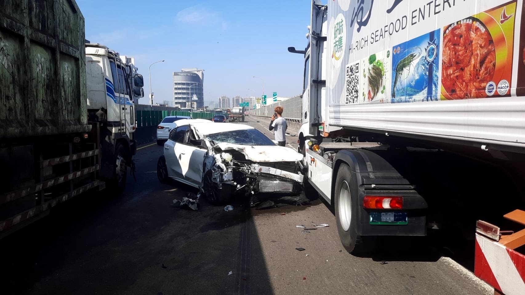 聯結車變換車道與小客車擦撞肇事 警方呼籲駕車應減速慢行注意周遭狀況