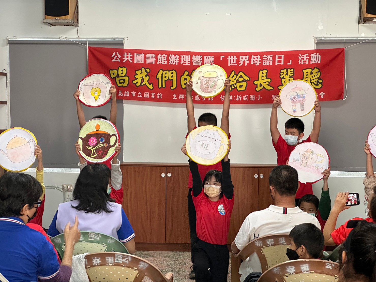 新威國小響應世界母語日,與高雄市立圖書館六龜分館攜手,23日師生前往新寮社區關懷據點表演,學生以嫻熟的客語說書、打嘴鼓表演,並以熱鬧的客家歌謠挷蘿蔔、揚葉仔組曲讓長輩們在學生悠揚的歌聲中重拾童年記憶,學生手上拿的白蘿蔔在歌謠間奏將蘿蔔分送給社區長輩,逗得老人家們哈哈大笑,歡樂氣氛洋溢在社區活動中心內。