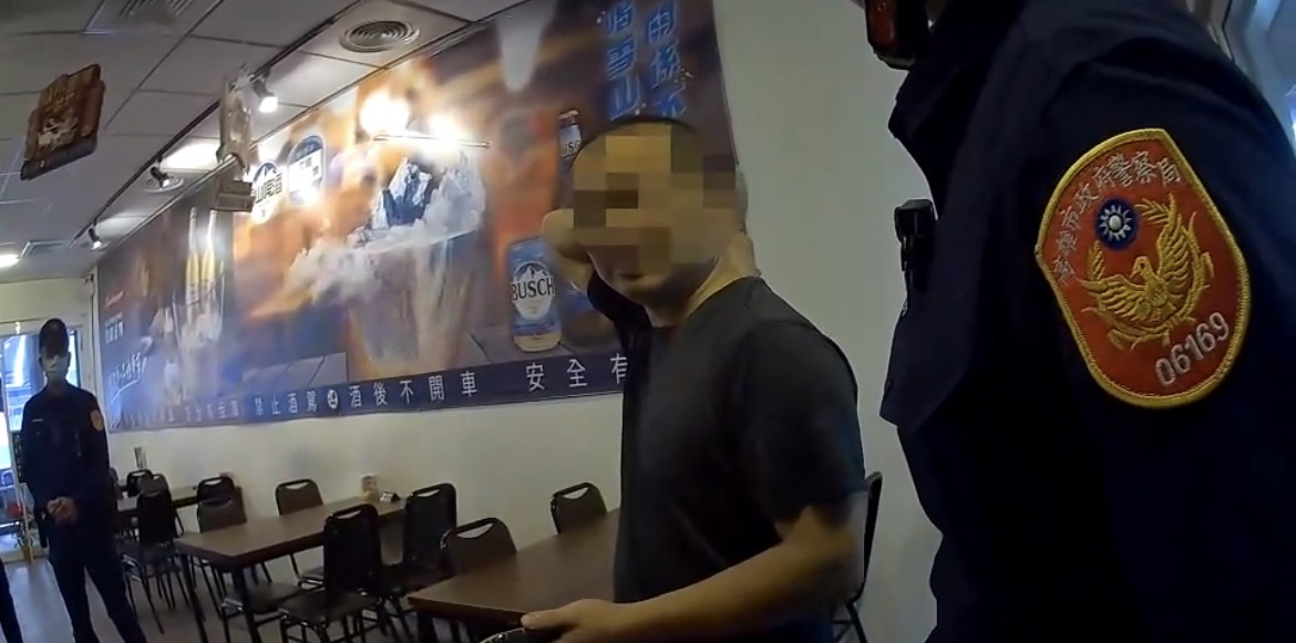 (記者吳冠賢\高雄報導)三民第一分局哈爾濱派出所警員張辰翔、林承宏於前(26)日,接獲報案前往三民區自立一路某燒烤店查處店招違規置放情事,赫然發現該店,44歲蘇姓老闆係一名台北地檢署發布的傷害案通緝犯,當場將其帶返解送歸案。