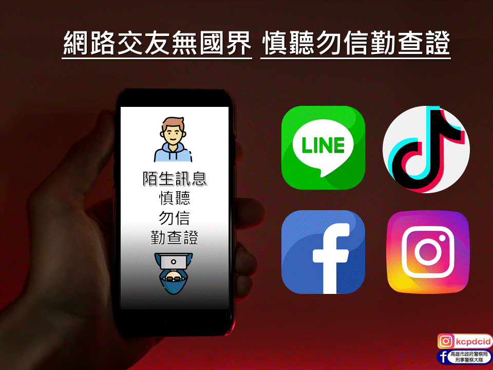 警方呼籲民眾,網路交友有風險,可以談心不談錢,勿輕易將手機號碼、個人基資提供網友,避免遭到騷擾,如不想收到陌生IG訊息,可至APP設定關閉「陌生訊息」,若不想在LINE被加好友,則可至APP設定關閉「允許利用ID加入好友」、開啟「阻擋訊息」、關閉「允許好友邀請」等,如遇有其他可疑情況,請即撥打反詐騙專線165查證。