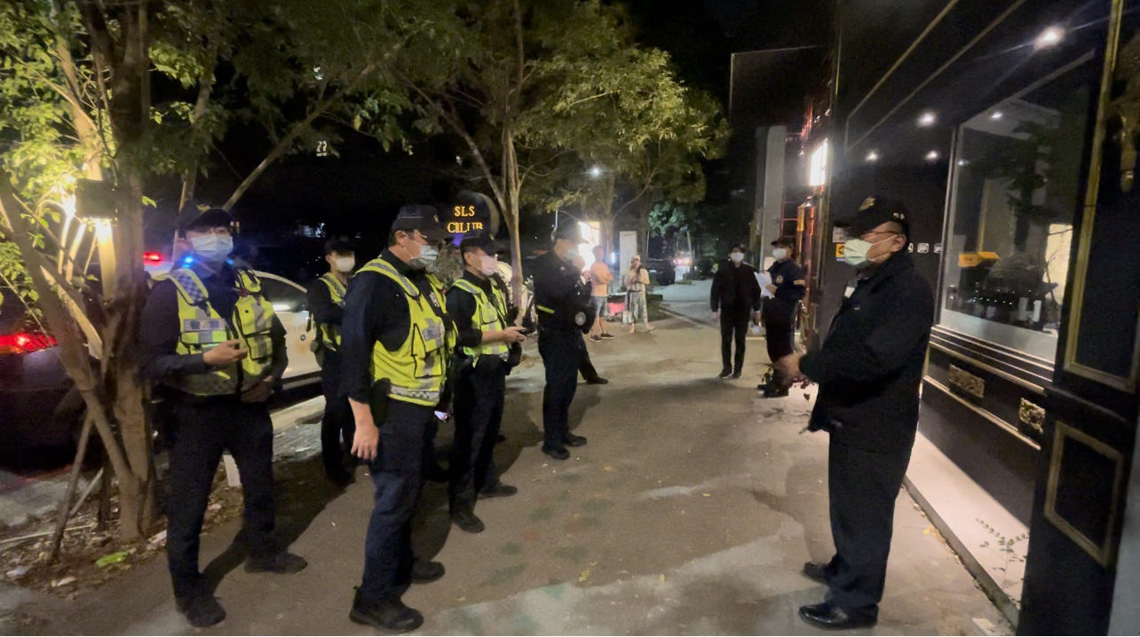 此次專案臨檢勤務,由分局長陳奕良率偵查隊、督察組、派出所等共動員30名警力,鎖定幫派組織賴以維生的活動營業處所及轄內聲色治安場所等強力查緝,運用優勢警力採「高強度、高密度」執行閉鎖式擴大臨檢掃蕩,達成取締、檢肅、查緝等任務,並規劃周邊各出入口同步設置盤查點,盤查全程執行出入人員,避免區塊內對象逃避盤查,展現執法力道,達到威嚇、掃蕩執法效果。