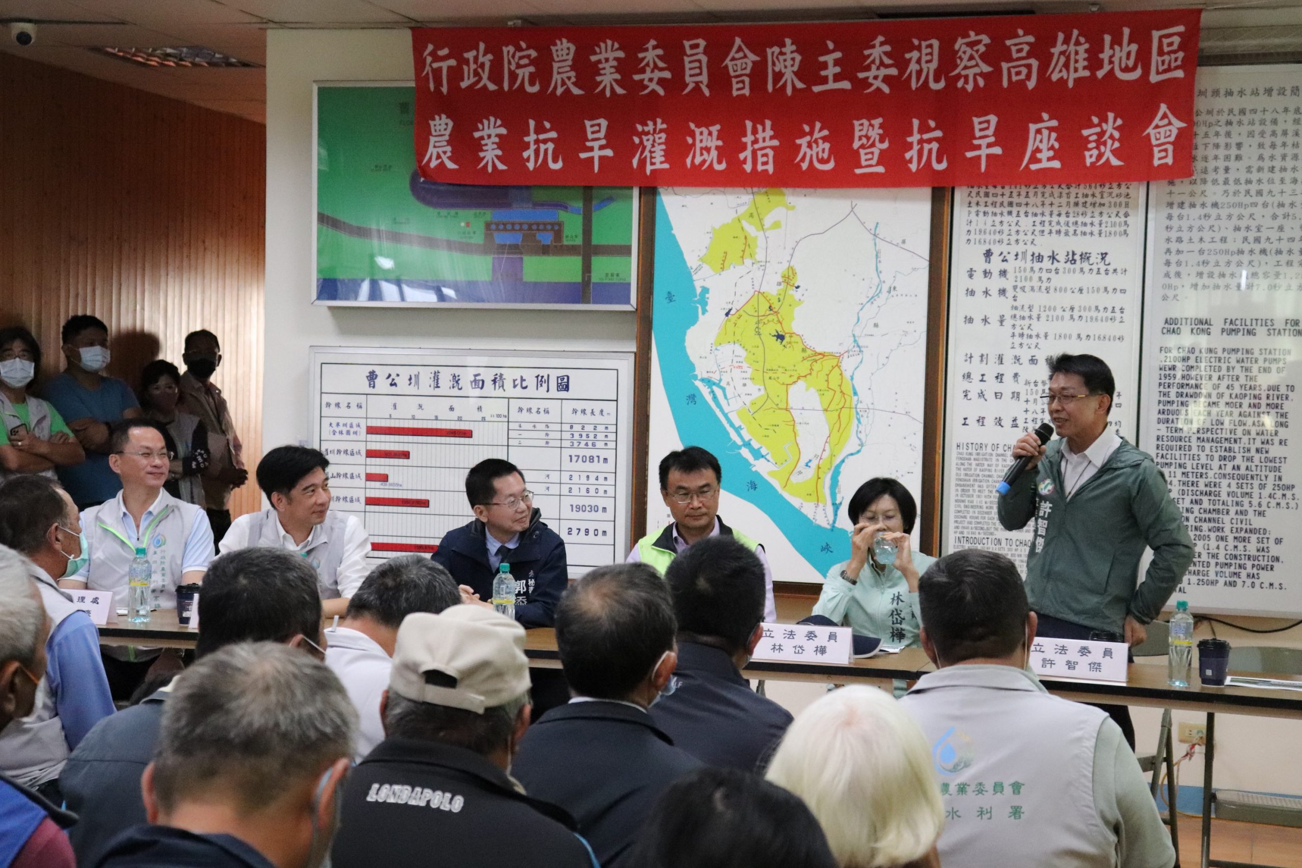 行政院農業委員會農田水利署高雄管理處已啟動各項農業抗旱灌溉措施,全力提供農民灌溉服務,行政院農業委員會陳吉仲主委今(11)日特地南下高雄,偕同立法院林岱樺委員、許智傑委員、高雄市政府郭添貴秘書長等,視察曹公圳抽水站及現地抗旱灌溉措施整備情形,並嘉勉高雄管理處同仁。