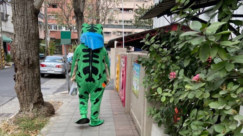 (記者李麗華報導)13日晚上,鳳山分局文山派出所接獲當地里長通報,有民眾反應當日15時許,看見身著青蛙造型服裝的男子,手持裝有保力達的袋子,從通學步道向學校內丟糖果之情事。故警方除加強周遭巡邏密度以確保孩童就學安全外,亦積極走訪附近住戶,並調閱監視器來調查青蛙裝男子身分。