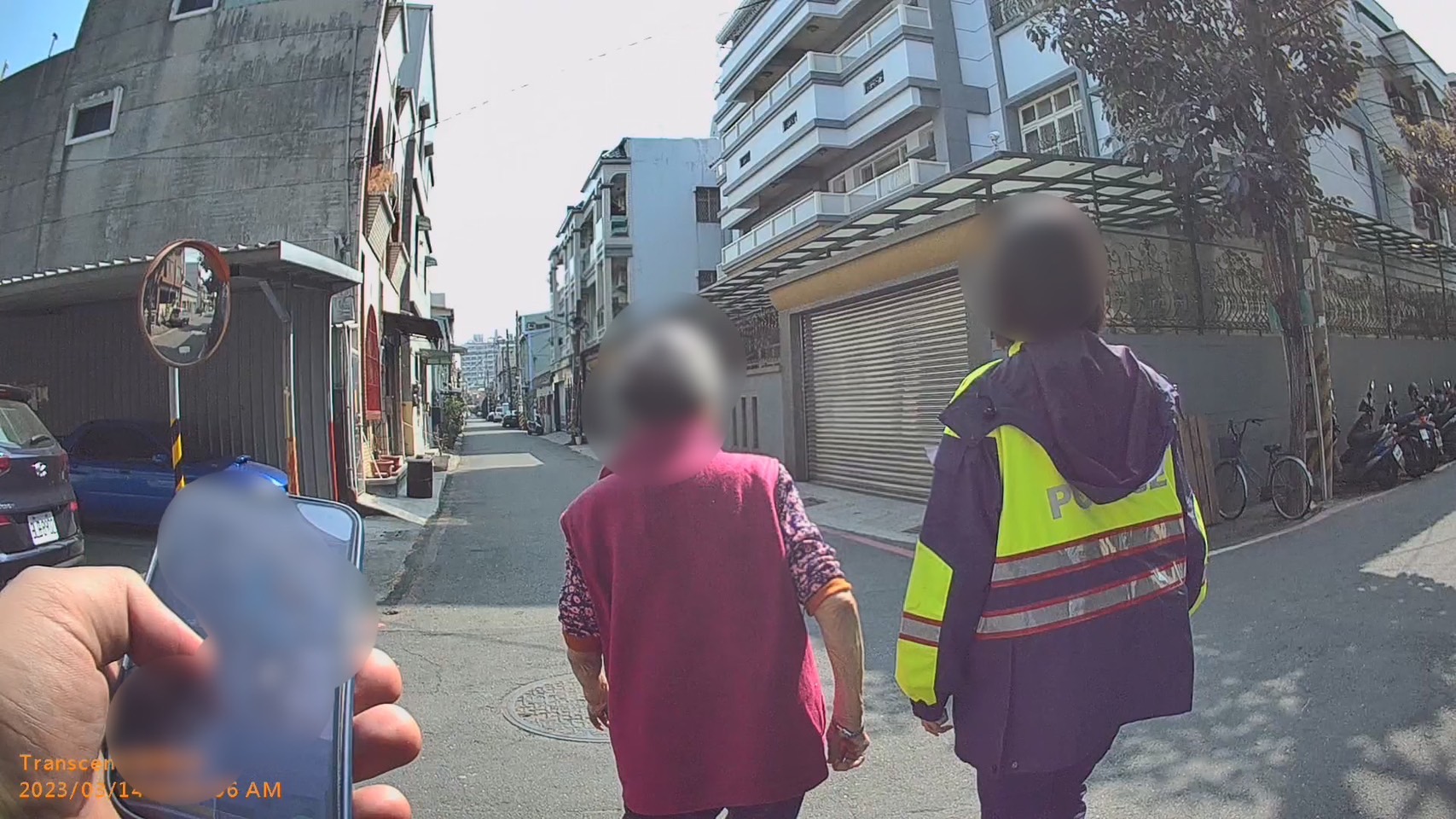 在員警詢問下,蘇婦表示家在前方不遠處,只是被人叫到自由巷在門口等做工;但員警心想,怎可能叫老婦人來做工?幸虧附近鄰居看到這一幕,幫忙聯繫老婦女兒,這才得知老婦因為走失在住家附近,擔心女兒責備,才會說被叫來做工忘了路回家。經員警與其女兒視訊確認老婦身分後,將老婦安全送返到家。
