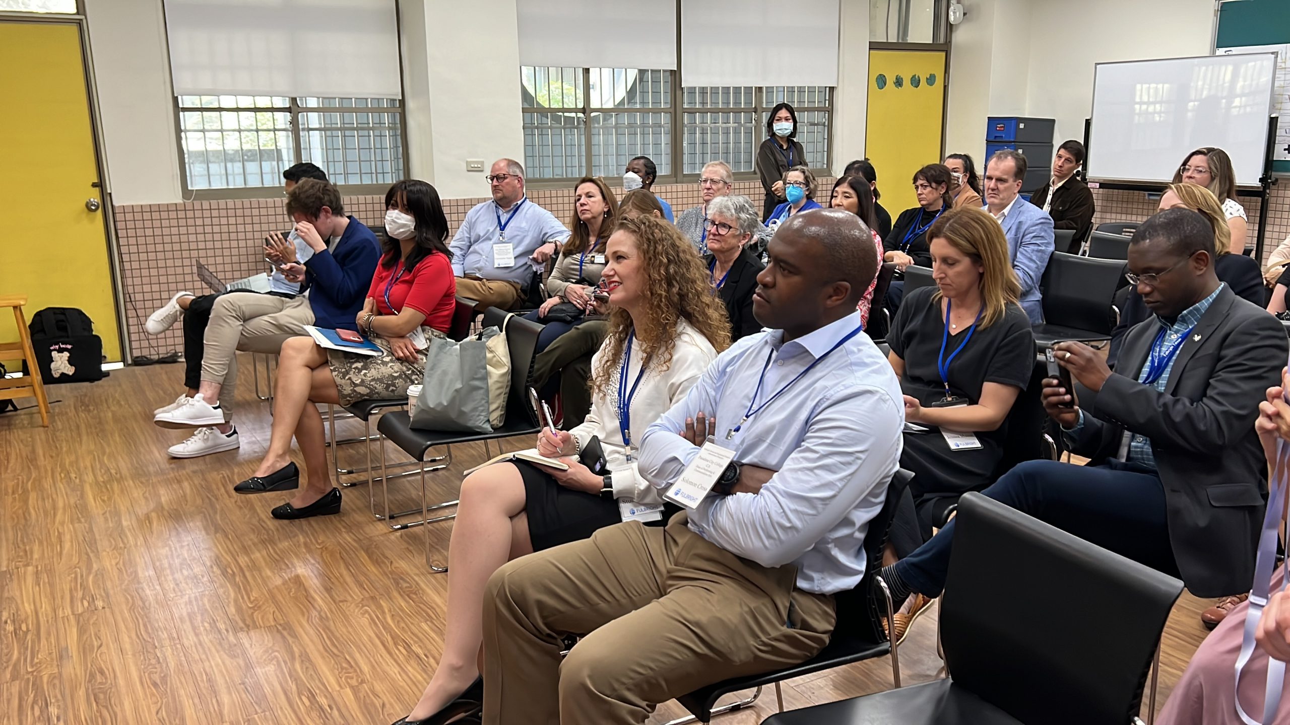 美國傅爾布萊特計畫學術交流基金會暨美國大學國際事務資深主管與教授組成的參訪團一行30人,由團長Anne Prescott及副團長Deena Mansour率領,於今日(16)蒞臨高雄市立新莊高中校園進行參訪和交流。