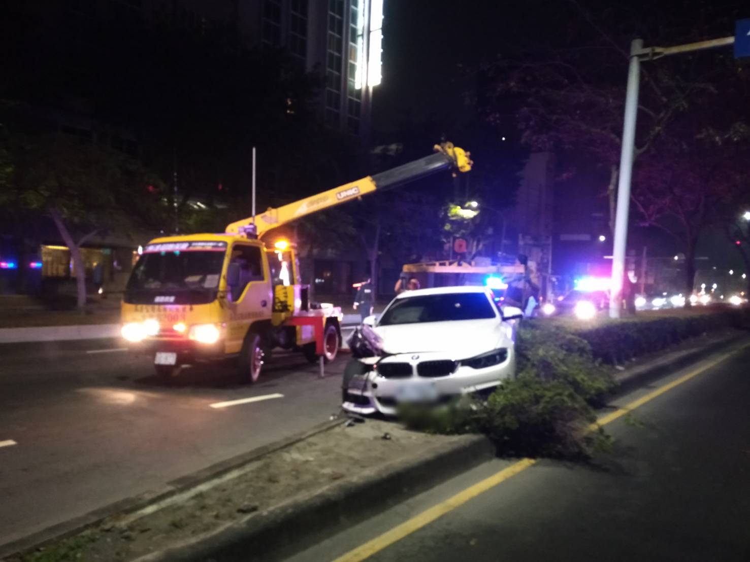 謝姓男子(52歲)駕駛砂石車行駛中華一路南往北方向慢車道在美術館路口停等紅燈,綠燈起步後慢慢切入快車道,隨即遭馮男(40歲)所駕駛之白色自小客車由後方撞擊,導致砂石車左後方輕微受損、白色自小客車右前車頭受損並撞上中央分隔島,雙方均獨自駕車、無人員受傷。