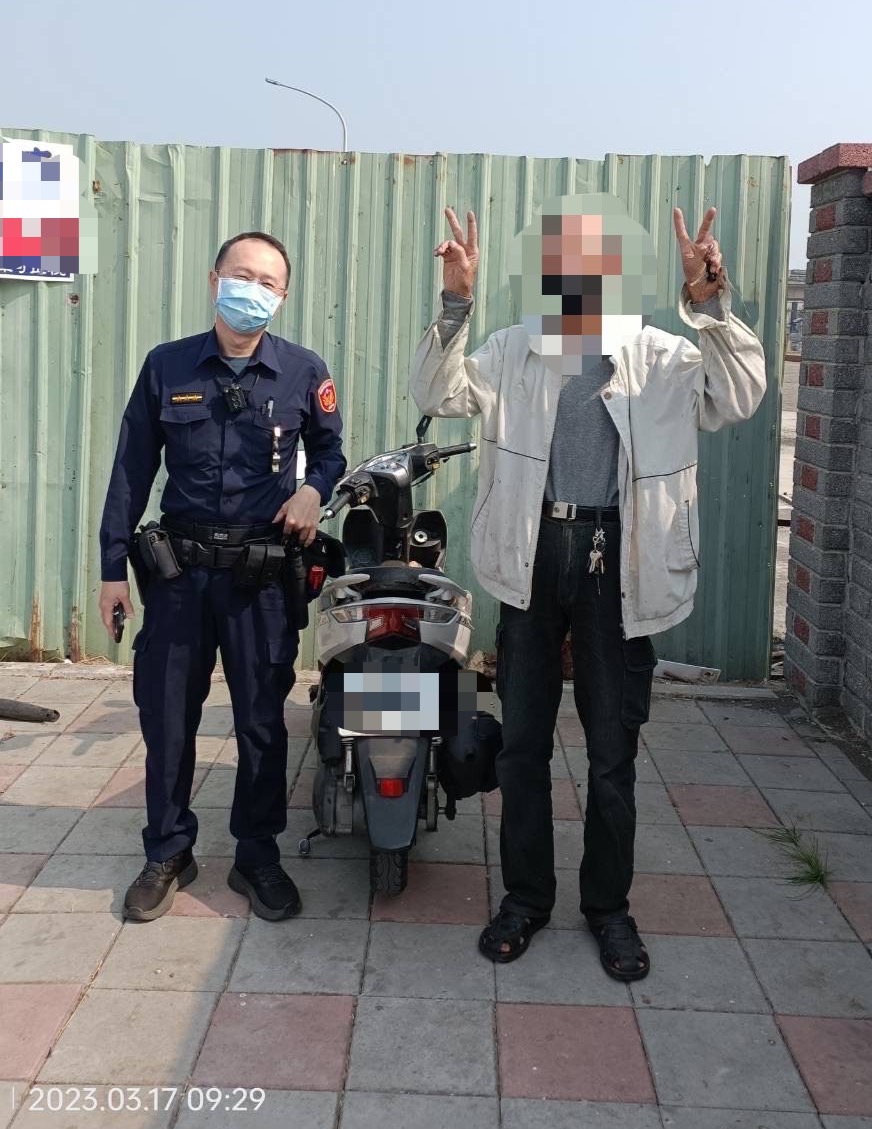 (記者林韋呈\高雄報導)74歲顏姓老翁外出購買早餐卻找不到機車著急向警方報案,經調閱監視器掌握老翁早晨行經路線,在員警通力合作下,終於在鳳山區保華路上順利尋回老翁的機車,對幫忙尋車的員警頻頻道謝。