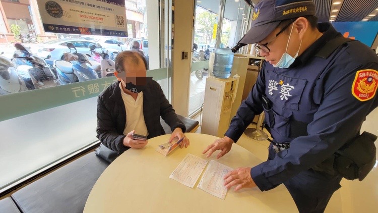 (記者李文賓報導)三民二分局覺民所巡佐李建德、警員黃建彰於112年3月17日13時許擔服巡邏勤務,獲報有民眾欲匯款新臺幣15萬元,行員察覺有異,詢問其匯款用途後通報警方,員警旋即趕赴現場。