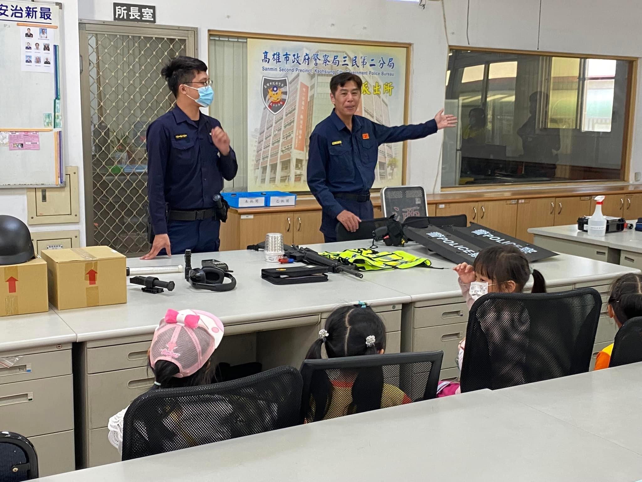 (記者魏正賜報導)三民二分局人口稠密、多有文教學區,為推廣校園交通安全與犯罪預防之觀念確立,在校熟悉情形已逐步上軌,三民二分局鼎山所警員許義澤主動向轄內幼兒園接洽,至派出所參觀體驗外勤員警的工作情形,並進行各項法治、道安觀念宣導。