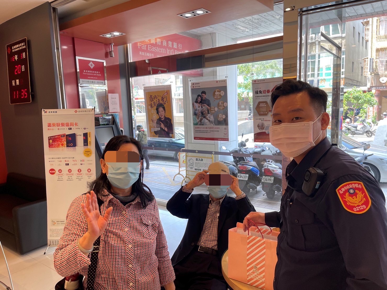 (記者張淑慧\高雄報導)高雄市鹽埕分局五福四路派出所所長陳進男、警員劉柏辰於日前巡邏時接獲報案,稱鹽埕區遠東銀行有民眾需要協助,陳等2員獲報後旋即趕赴現場,到場後為張姓民眾與其高齡90歲之丈夫,因為近期要前往大陸探親,需提領高額現金至其他銀行轉帳,經警方與銀行行員協助查證後並無遭詐騙情事。