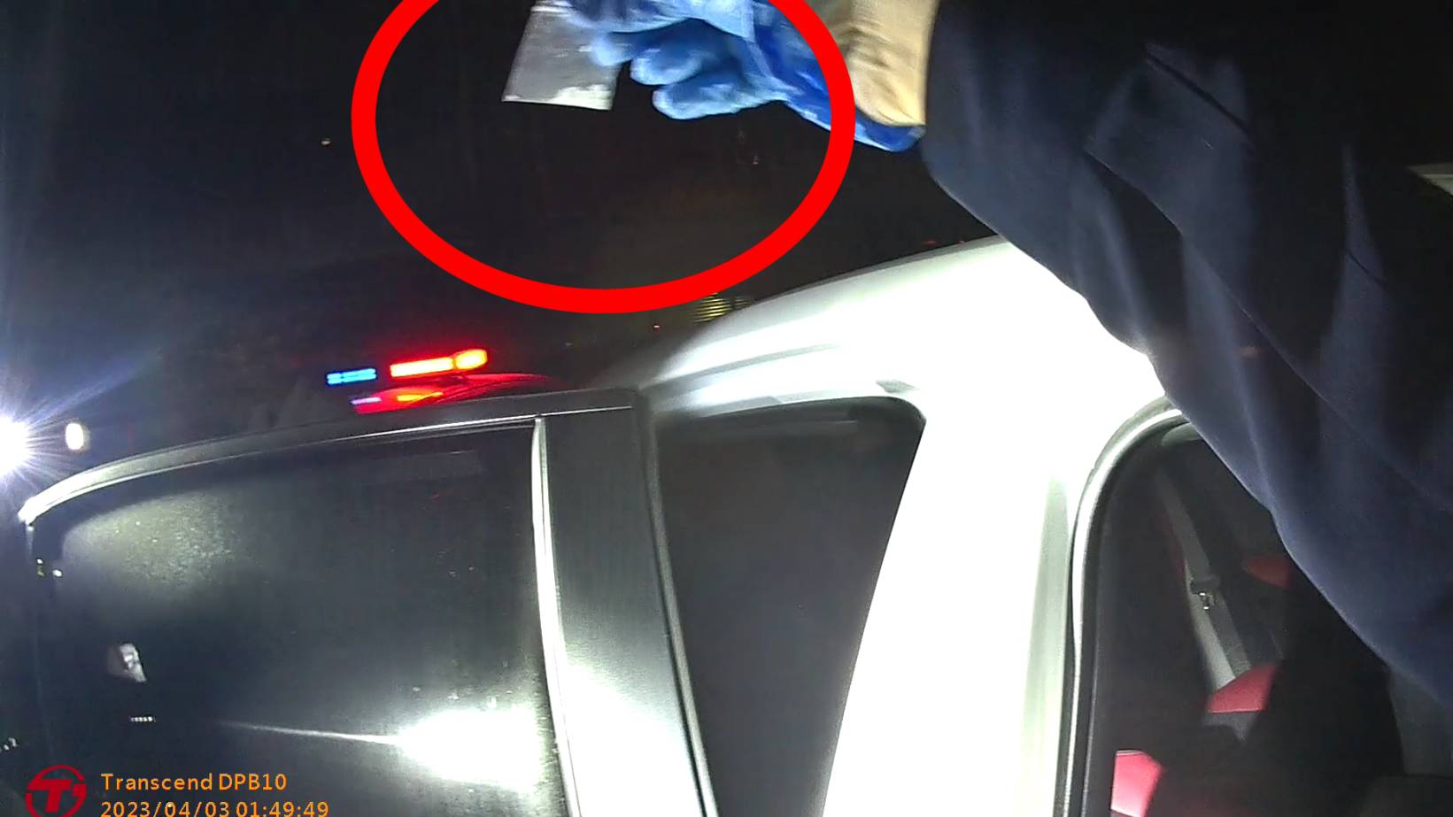 圖說:警方密錄器所拍攝毒品嫌犯當時情形。(台南市第二分局提供)