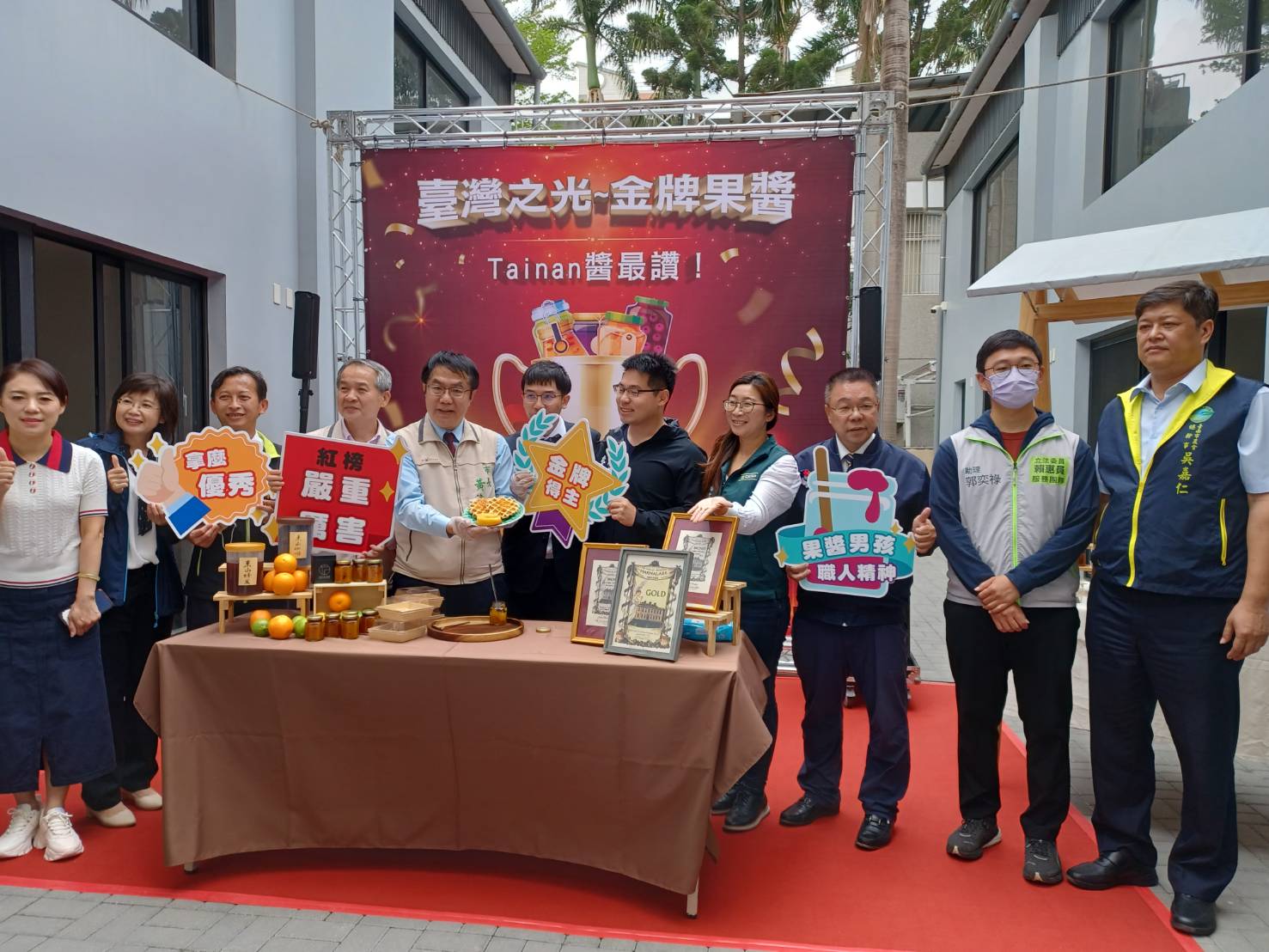 黃偉哲市長大力推薦金牌果醬。(圖/台南市政府提供)