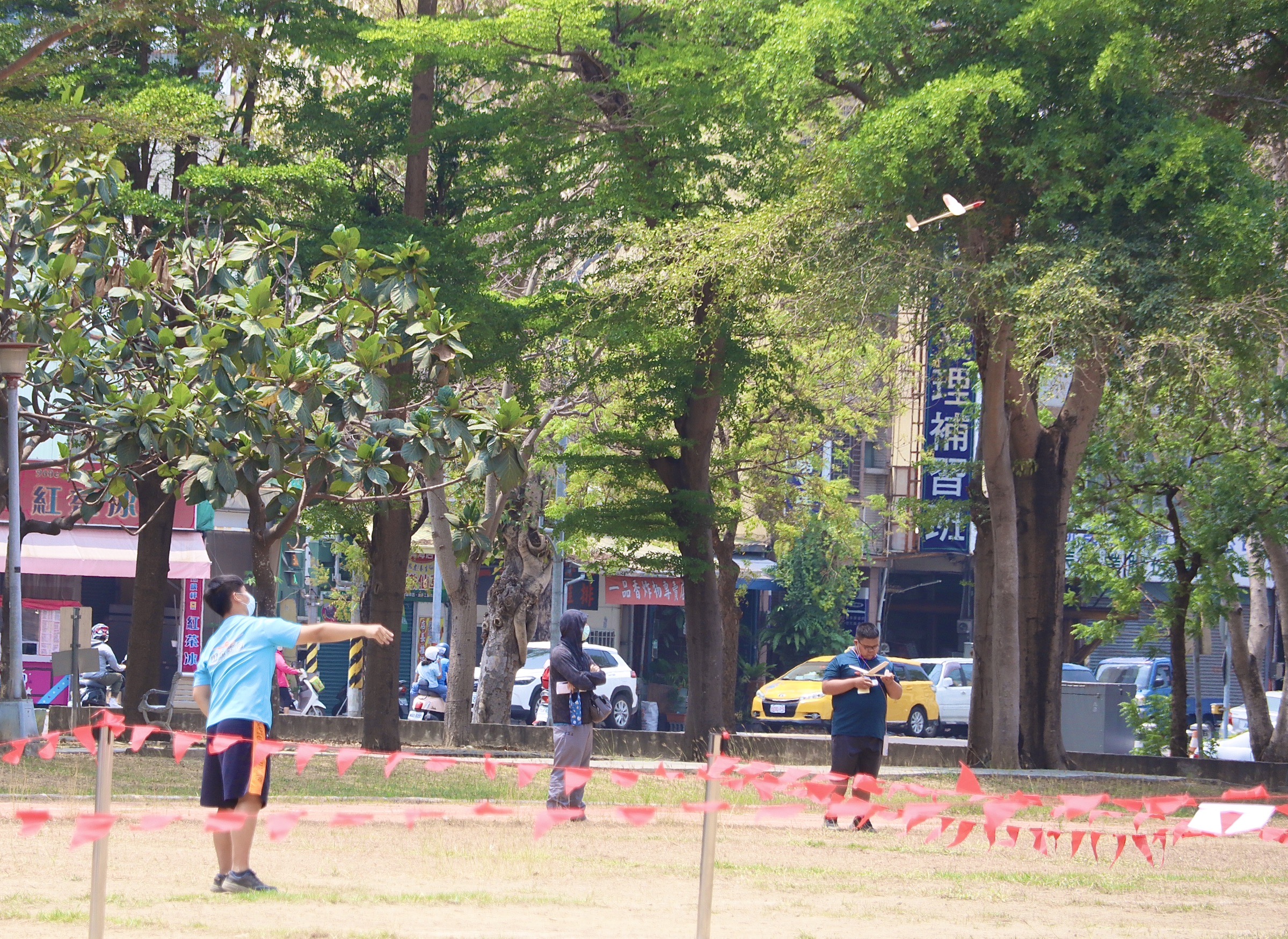 上午最先登場的國小組手擲飛機比賽,其中嘉興國小五年級學生鄭翊良(圖左)興達國小五年級張亦賢(圖右)分別擲出17秒55與11秒43好成績,技冠群雄;兩人平時都愛手擲飛機,平常會練習,從多次經驗中,找到讓手擲飛機保持滯空最久的技巧。