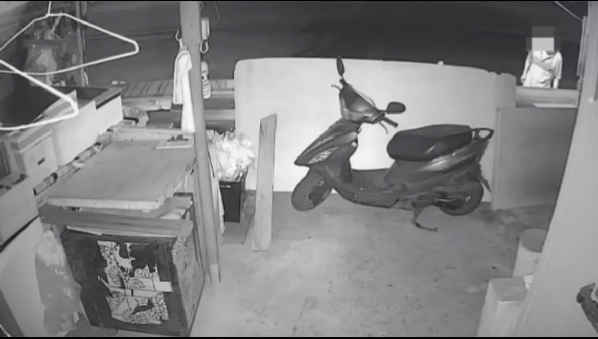 經檢視畫面,警方發現當(9)日凌晨4時許有一男子在牆壁外慢慢靠近郭女的機車,四處張望確定無人後,竟伸手越過牆壁翻動機車車箱,並下手行竊車廂內的財物,不到30秒時間就得手了贓物離開。