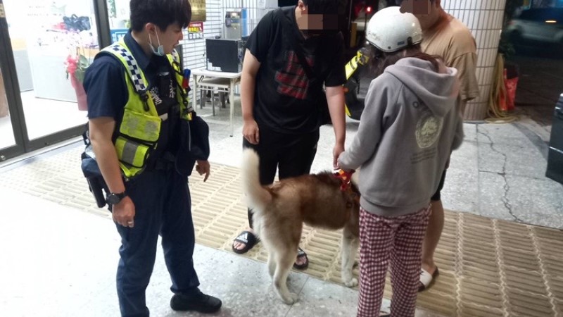 圖說:走失咖啡色哈士奇遇上好心人,順利被飼主領回。(高雄市三民警分局提供)