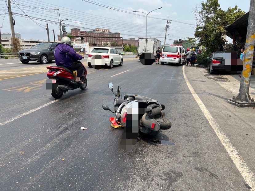 事情發生在今(15)日11時45分許,黃姓男子(45年次)駕駛大貨車在角宿路與義大路口時,突然遭路過民眾攔下表示貨車沿路漏油,導致後方4部機車摔車受傷。
