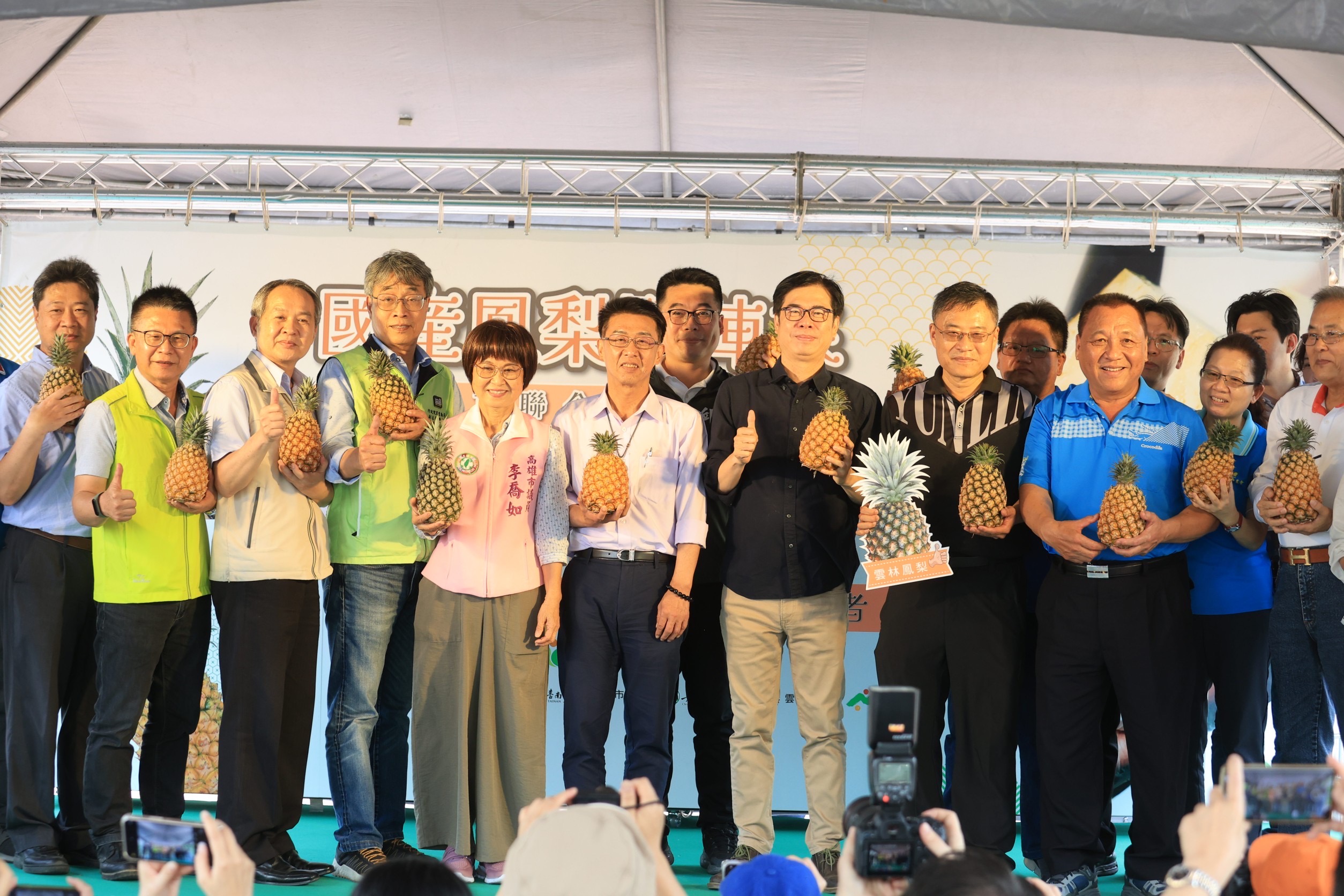 陳其邁也感謝農委會陳副主委先前帶隊至日本東京食品展,史無前例聯合9縣市團結行銷,成果卓著,他也大力肯定高雄農漁產銷售到國際受到歡迎,並表示對台灣鳳梨有信心,認為好東西與好朋友分享。