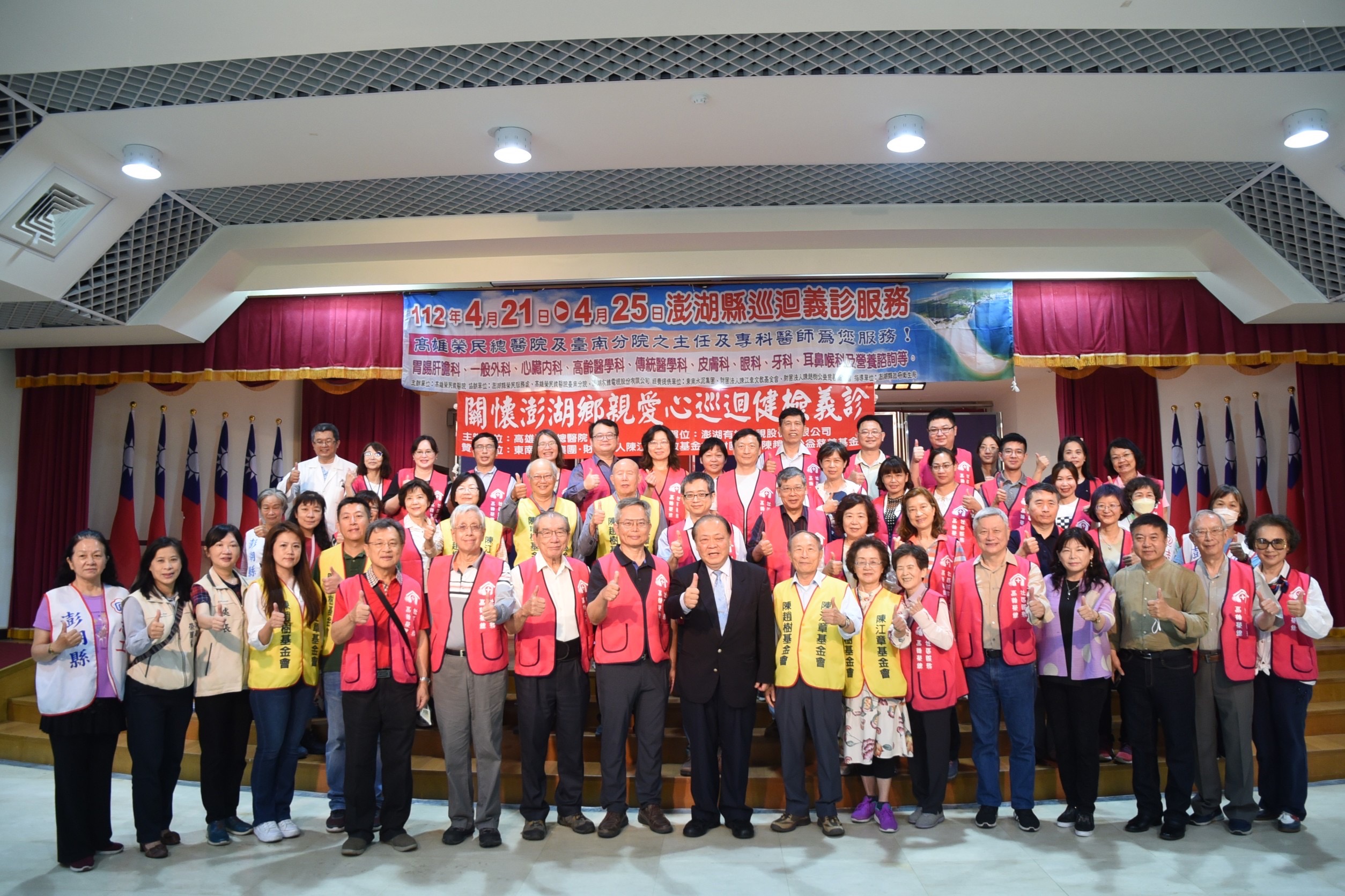 東南水泥集團所屬陳江章文教基金會與陳趙樹公益慈善基金會,為服務澎湖縣偏遠及離島居民,委請高雄榮民總醫院展開巡迴免費疾病篩檢和醫療保健義診活動,此次由高雄榮總院長林曜祥率領高雄榮民總醫院、臺南分院主任及專科醫護約50人組成巡迴醫療團,儀器及醫護陣容齊全。