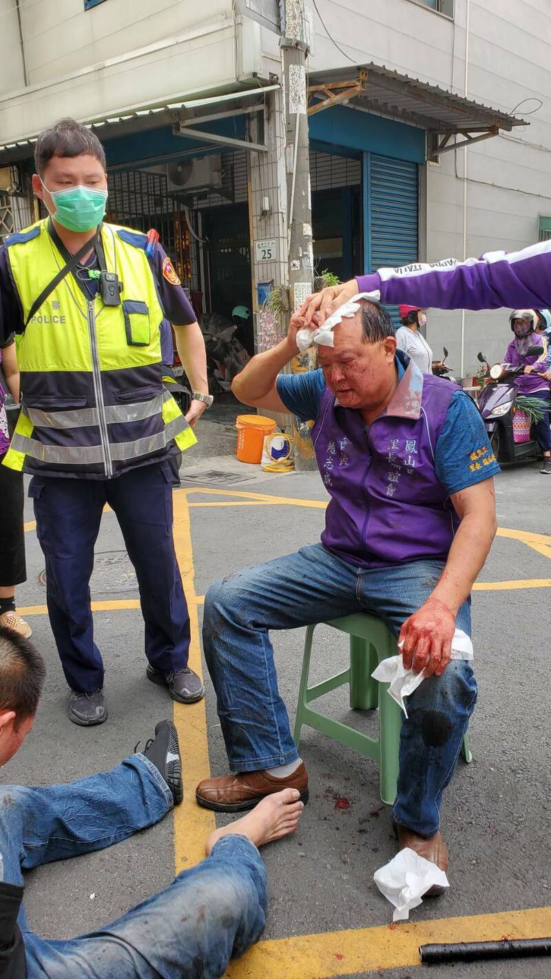 高雄市鳳山區里長聯誼會長鎮北里長趙志成今(25)日早上於服務處大門口,突遭2名歹徒分持鐵棍毆打,造成頭部、手部受傷,他力搏2嫌,將吳姓男子過肩摔壓制在地,鄭姓男子見狀落荒而逃,趙志成出現腦震盪、頭部撕裂傷10公分縫合傷口,吳嫌在偵訊中,供稱與趙有糾紛。