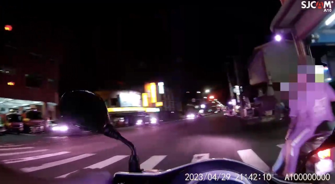 圖說:酒駕男邊繞境邊喝酒,機車三貼遭警攔查落網。(高雄市岡山警分局提供)