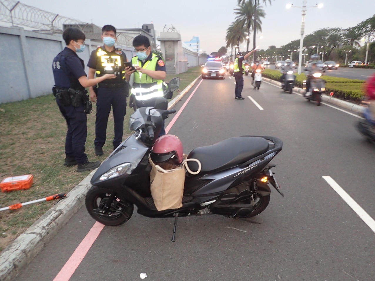 (記者張淑慧報導)5月2日18時許,高雄市前鎮分局獲報前鎮區中山四路北上慢車道發生交通事故,經交通分隊員警趕赴現場查處,初步了解係72歲林姓女騎士於中山四路慢車道南往北直行行駛,疑似因閃避路中掉落之安全帽自摔,全身多處傷送小港醫院,無生命危險,無酒駕情事。