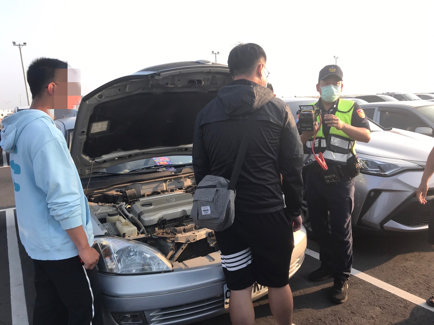 何等2員於布袋商港第一停車場交整時,忽有一名男子向警方揮手尋求協助,表示要開車與朋友趕回桃園住家,不料車輛突拋錨無法發動,由於對地域不熟悉又逢假日,不知應聯繫哪家修車廠,讓他著急不已。員警得知後隨即協助查看,疑似電瓶沒電,員警即使用接電設備幫忙發電,成功將車輛發動,並叮囑其應盡快更換新電瓶,以維行車安全,該男子對港警之暖舉,一再稱謝不已!