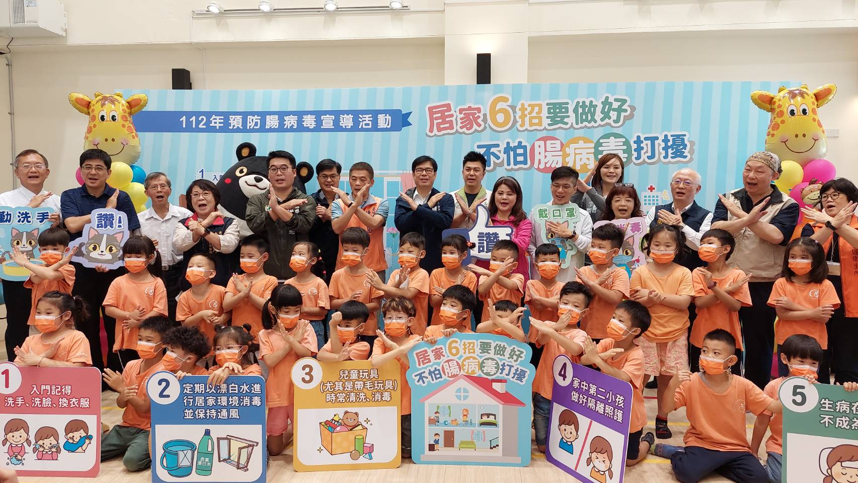 (記者張淑慧報導)天氣逐漸變熱,即將進入腸病毒流行季節,為強化師生及家長對腸病毒的防疫認知,高雄市政府今(5)日於左新非營利幼兒園辦理「居家6招要做好,不怕腸病毒打擾」宣導活動,由陳其邁市長現場與學童進行洗手歌帶動跳,宣導正確洗手及居家照護6招等,共同對抗腸病毒,守護家中寶貝健康。