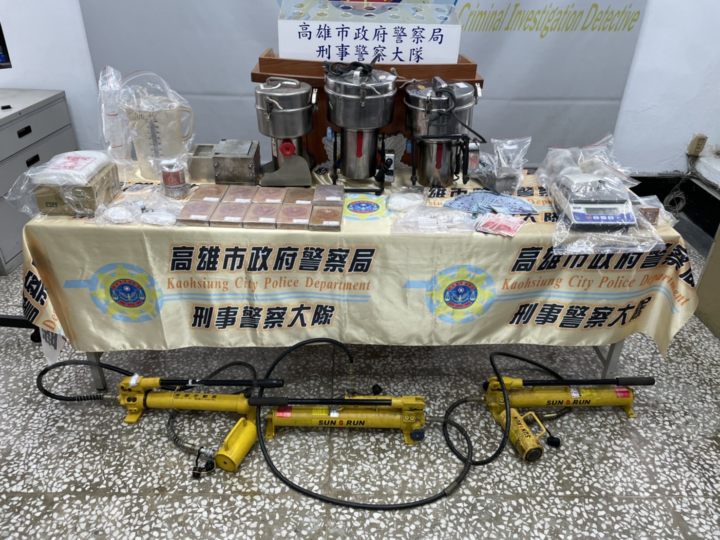 門徒翻版!海洛因磚製毒工廠!(高雄市政府警察局刑事警察大隊提供)