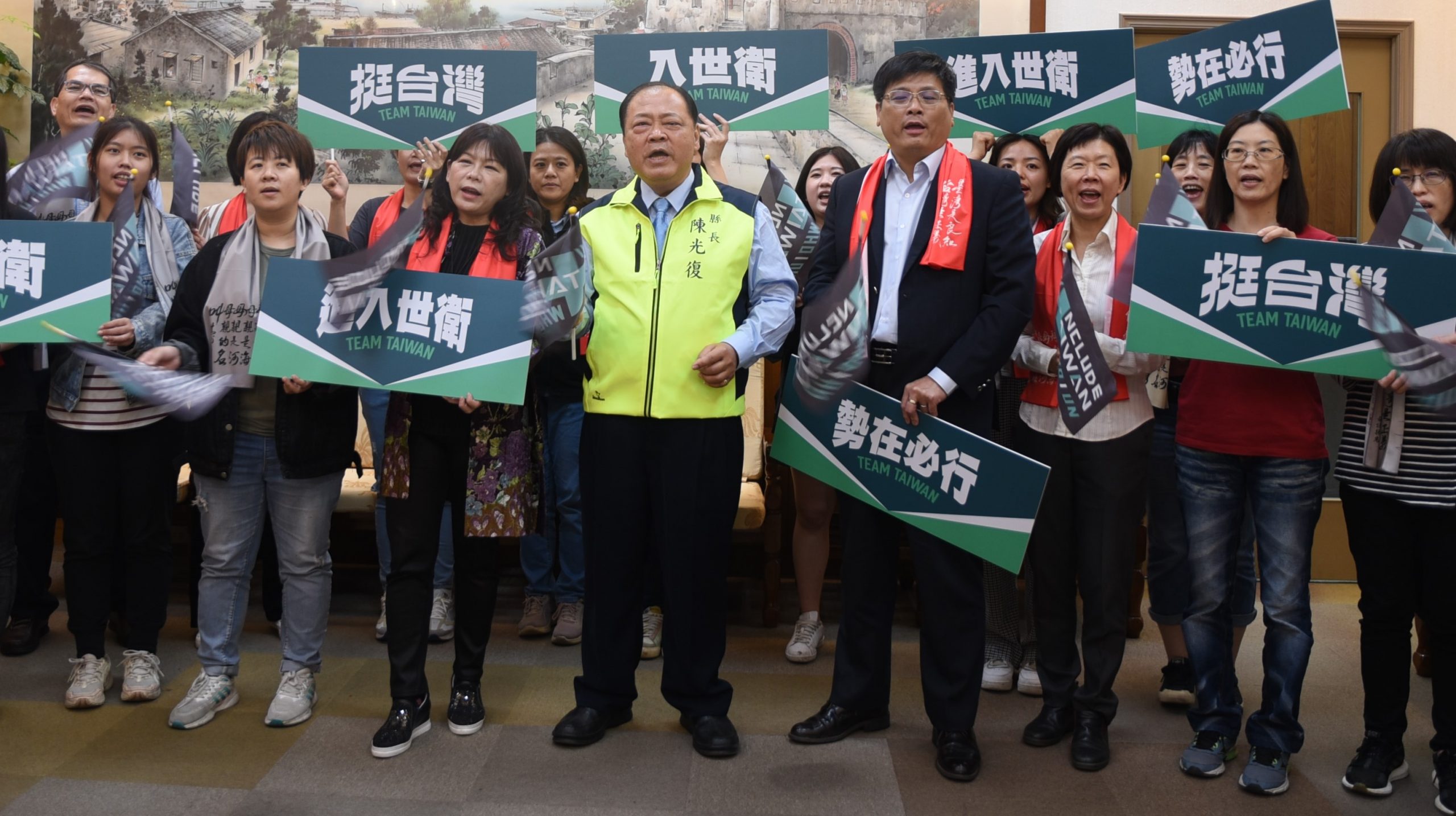 陳光復率副縣長林皆興、衛生局長陳淑娟及醫療相關工作人員,高聲唱出「伊是咱的寶貝」,表達「聲援台灣入世衛」的訴求。
