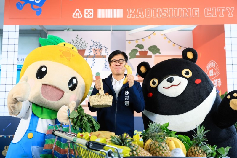 高雄市長陳其邁化身最強推銷員,邀請民眾一同品嚐高雄新鮮水果及農產。(高雄市政府提供)