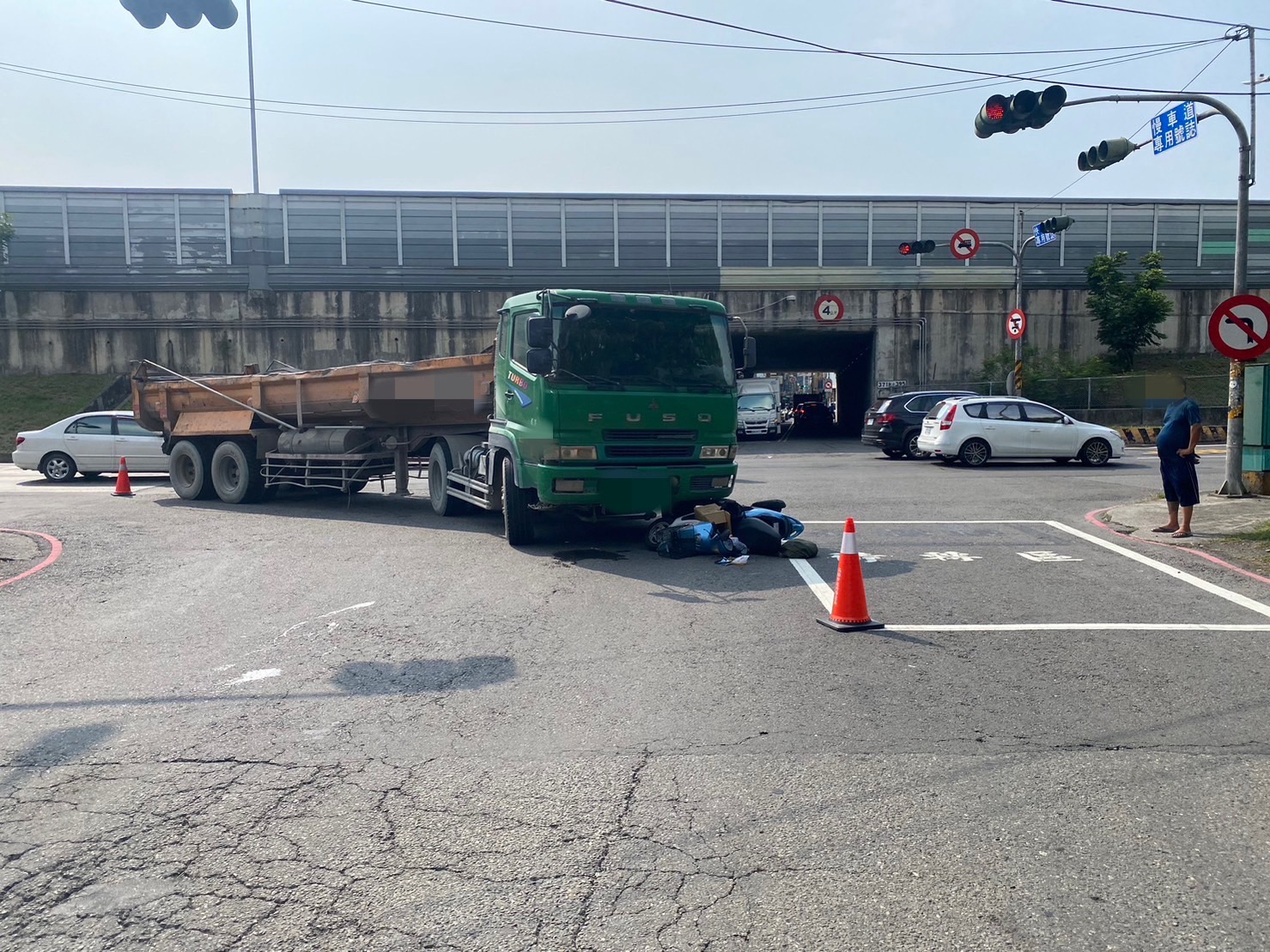 聯結車路口紅燈右轉與機車擦撞幸無大礙