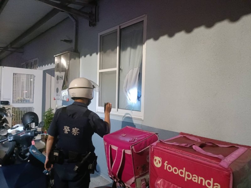 圖說:發生口角爭執酒後衝動持空氣BB槍槍柄敲擊玻璃,反而右手被玻璃割傷。(高雄市小港警分局提供)